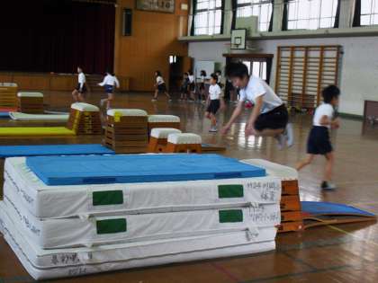 これから挑戦する技の練習では,確認し合いながら,何度も何度も跳んでいました。
