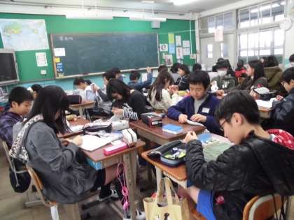 「6年生を送る会」で在校生にプレゼントする雑巾を心を込めて作っています。今日はどちらかというと,楽しいおしゃべりの方が勝っていたようですが,明日までには完成させましょう!