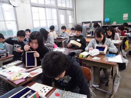 6年生の卒業制作は,手作りのオルゴールです。自分にしか作れない世界に一つしかないオルゴールをと取り組んできました。いよいよ大詰めです。ニスを塗って完成という人からまだ彫っている人,さまざまですが,思いは「早く完成させて自分の家に持って帰りたい」ですね!