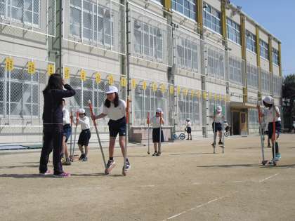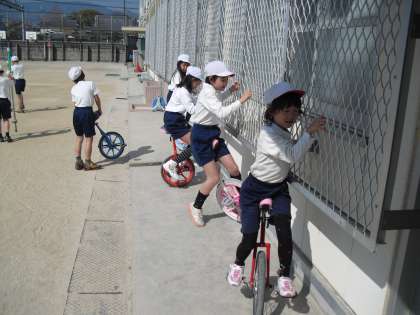 前回に引き続き,フレアスポーツで,1輪車と竹馬に挑戦しています。竹馬では先生目指して一歩ずつ前進です!1輪車でも上手に移動しながら練習に励んでいました。