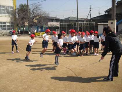 息を合わせて,ゆうびんやさんの歌に合わせて,大なわをしました。目標は10枚拾うこと!タイミングを見計らって大きなジャンプをしていました。