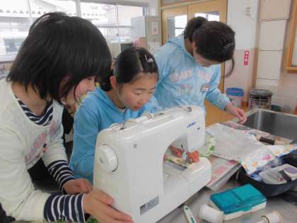 家庭科の時間にミシンでランチョンマットをつくっています。両手でしっかり布をおさえ、恐る恐るミシンのペダルを踏み込んでいくと・・・。