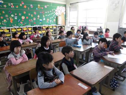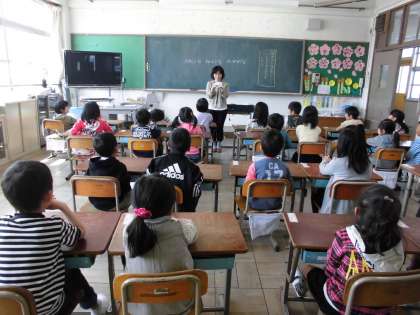 今日は,初めての給食の前に,手の洗い方・給食のエプロンのたたみ方・給食の時間の過ごし方などの学習をしました。給食当番の子どもは,エプロンやバンダナの身につけ方がわからないで,手間取っていました。が,自分でちゃんと用意ができました。当番が給食室へ行っている間,ほかの子どもは座って待っていました。賢いですね!