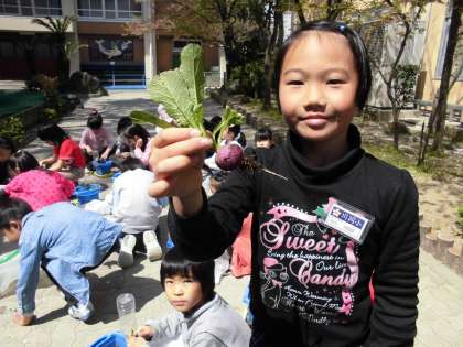 4月11日(金) 3年 理科「二十日だいこんの収穫」
