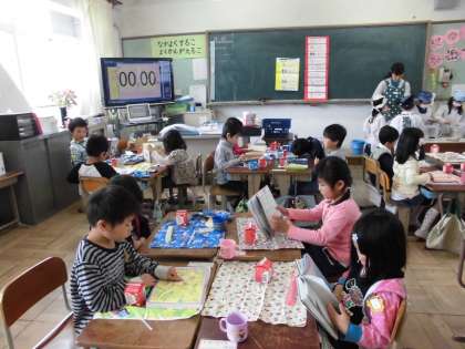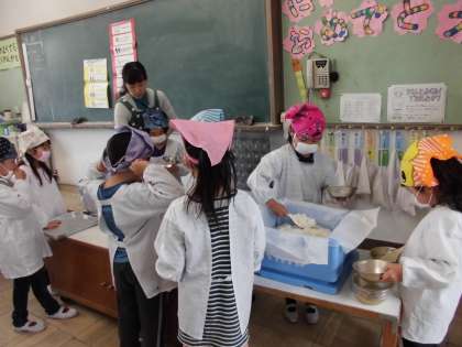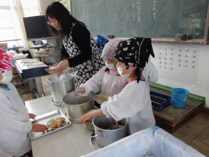 今週の給食当番は,今日で終わりです。この一週間よくがんばりましたね!重い牛乳やご飯や食器を2階の教室まで,がんばって運びました。大変だったかもしれませんが,楽しかったですか?エプロンは,また来週の給食当番が使いますので,月曜日に持ってきてくださいね。