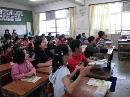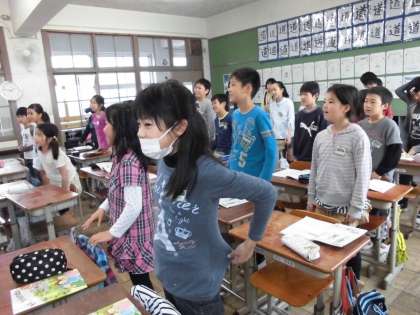 5年生の外国語活動は「I’happy」の学習です。表情やジェスチャーをつけて,相手に感情や様子を積極的に伝えようとする学習をしました。表情やジェスチャーなどの言葉によらないコミュニケーションの大切さに気づいてほしいですね!