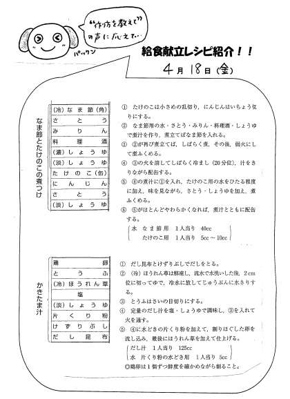 ●たけのこは,かんだらさっくといって,おいしかったです。