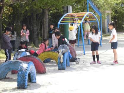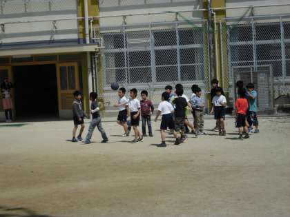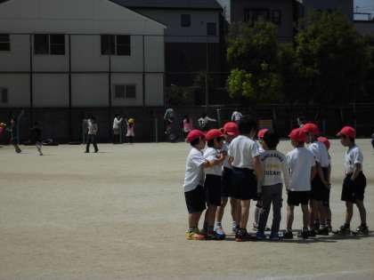 春らしいお天気になりました。遊んでいると,汗が出てきます。1年生は,黄帽をかぶって遊んでいるので,他の学年も気をつけてくれます。