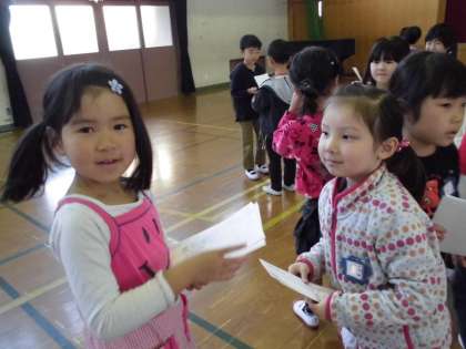 今日は,1年生全クラスでなかよしをいっぱいつるために「名刺こうかん」をしました。前の時間には,自分のクラスで「名刺こうかん」をしていたので,今回は2回目になります。今日は,自分のクラス以外のお友だちと「名刺こうかん」をしました。名前だけでなく,最後はちゃんと握手していました。新しいお友だちはできましたか?