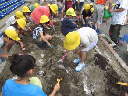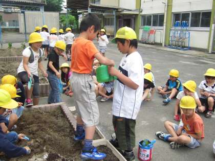今日はプランターにひまわりとマリーゴールドの種をうえました。また,花壇にも腐葉土を入れ,土を耕しました。きれいな花が咲くといいですね。