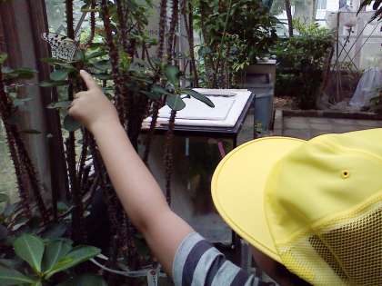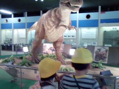 きれいな蝶に大きな大きな恐竜がいます。