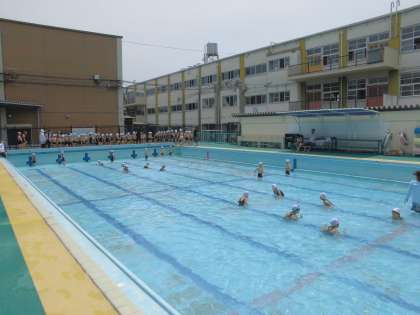 いよいよプール指導がはじまりました。1年1組2組3組と一緒に楽しく学習ができました。