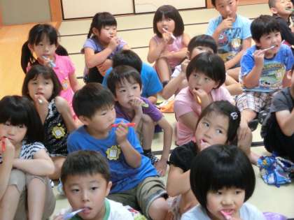 6月16日(月) 1年・2年・たんぽぽ 歯磨き巡回指導