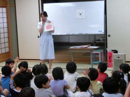 歯科衛生士さんを招いて,歯磨きの仕方について指導を受けました。まず最初に虫歯がどうやったらできるかという話を聞きました。そのあと,歯ブラシの持ち方や磨き方について詳しく教えていただきました。給食後さっそく熱心に歯を磨いている子どもたちがたくさんいました。お家でも上手に磨けるかな?