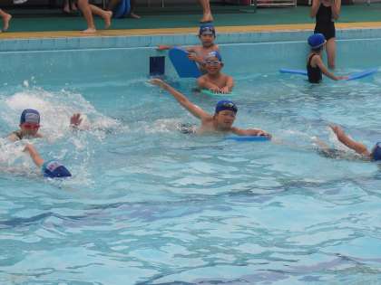 今日から3年生も水泳学習が始まりました。バディを確認して、友達と協力し合いながら学習を進めています。上手に浮いたり、進んだりできるといいね!