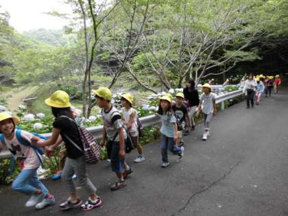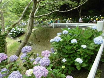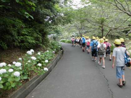 所内のなかよし港から,プレイホール前へ。満開のあじさいが出迎えてくれました。