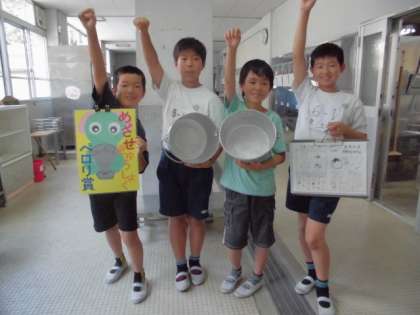 慣れない味に,ちょっと手ごわいおかずでしたが,さすが川岡っ子です。