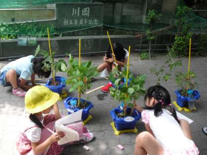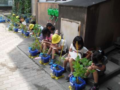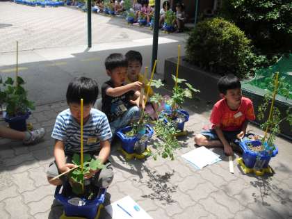 自分で育てている野菜を観察しました。教科は生活ではなく,国語です。どんな「かんさつ名人」になれたでしょうか。