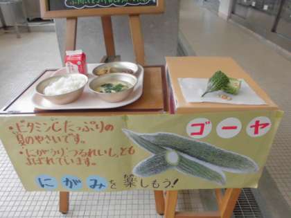 7月は,夏野菜が続々登場しています。昨日は,ゴ—ヤ!!。苦味の強い野菜も