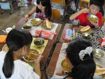 川岡飯店の担々麺は子どもたちに大盛況!!みんなでおいしくいただきました!!