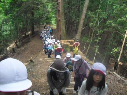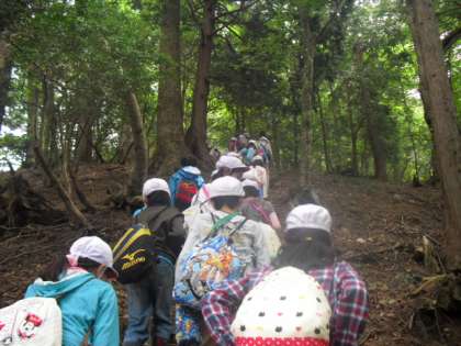 山に登ります!!挑戦、協力を今日のめあてとし、頑張ります!