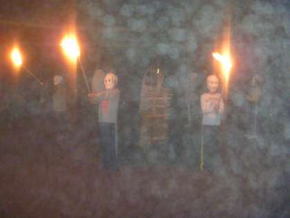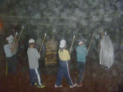 夜は,楽しみにしていた「キャンプファイヤー」です。天気が不安定で雨が降ったりやんだりだったので,ぎりぎりまで,心配しましたが,小雨の中なんとかできたので,よかったです。火の女神からもらった「6つの火」でファイヤーに点火をしてはじまりました。