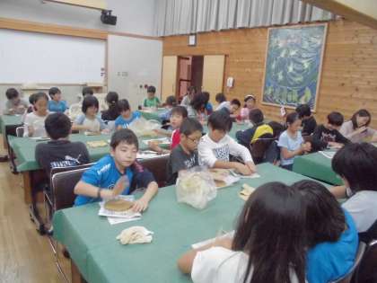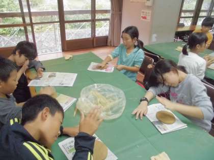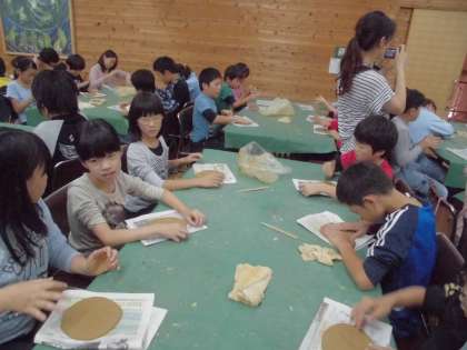 雨のために外での活動ができなくなりましたので,「花背焼き」にチャレンジしました。それぞれに,オリジナルの器ができました。できあがるのはもう少し後です。