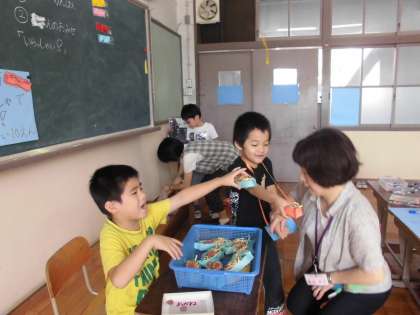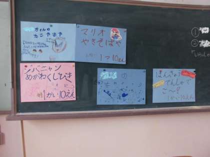 四時間目は,生活単元学習です。9日(火)にたんぽぽ学級で「なつまつり」をします。そのためにお店の準備をしています。今日は,おみせやさんの練習をしました。