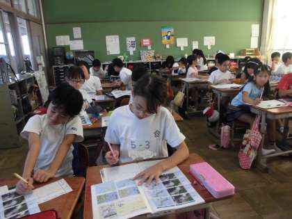 5年生は,理科で台風の動き方や台風が接近しているときの天気の変わり方を調べています。「台風」についてよく知っている「台風博士」がいるので,驚きました!