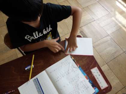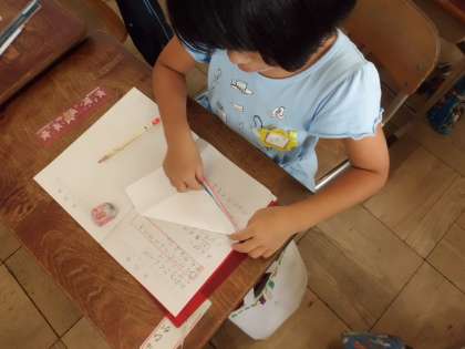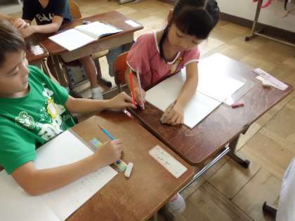 今日の算数は「おおきさくらべ」でした。鉛筆の長さや,紙の縦と横の長さをくふうしてくらべました。いろいろな方法を自分たちで考え出して,なんとかくらべようとしていました。次は何の長さをくらべるのかな?
