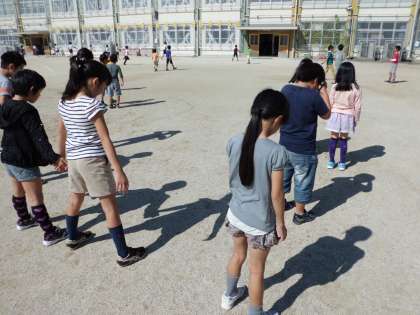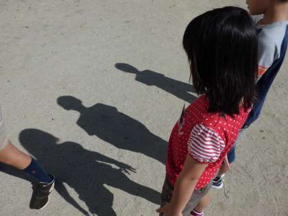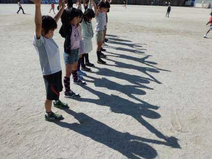 秋晴れのきれいな青空に、みんなのかげがうつっていました。