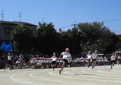 5年生は最速は誰だ!ゴールを目指して、かけぬけます!負けられない戦いがそこにあります。