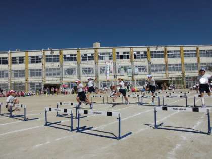 ホップ・ステップ・ハードル!!の3歩のリズムでうまくとべるように自分に合ったインターバルで練習してきました。かっこよくハードルを跳び越すぞ!