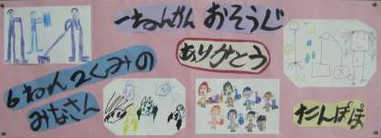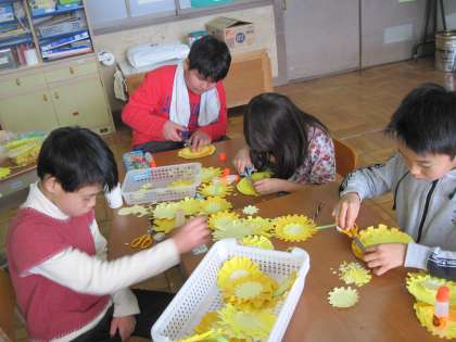 たんぽぽの子どもたちは、たんぽぽの花びらひとつひとつに 6年生への 感謝の気持ちをこめて、お祝いの飾り作りを しました。