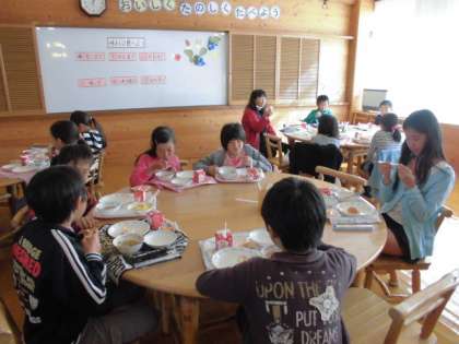 手作りの給食をみんなと味わいながら,楽しいひと時を過ごしました。