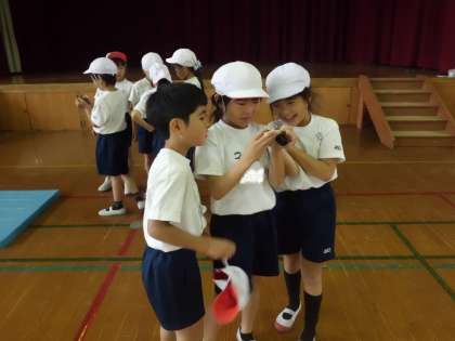 デジタルカメラを使って,自分の技の出来栄えをチェックしたり,友達からアドバイスをもらったり,自分たちで考えて学習をしています。