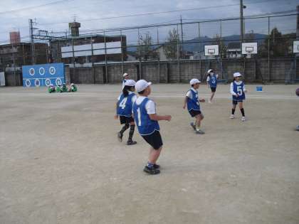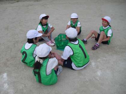 ルールも分かってきて,楽しくゲームをすることができるようになりました。1試合目と2試合目の間に,作戦を考える時間をとりました。みんな一生懸命話し合っています。