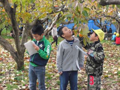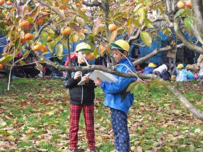 お弁当のあとは,ノートをまとめたり,柿の木や実をスケッチしたりと,思い思いに過ごしました。