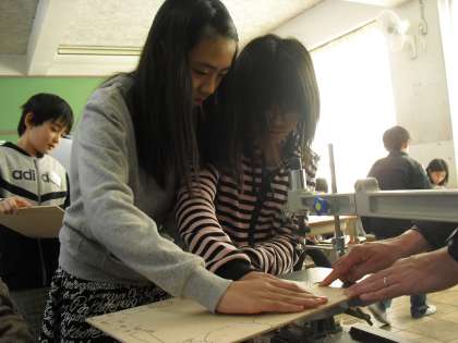 5年生の図工は「板を切り抜いて」です。この単元では、あの恐怖の「電動のこぎり」を用いての学習です。すいっちを入れた瞬間に鳴り響くあの音と、激しく上下するあの恐ろしいのこぎりの刃が、子どもたちの恐怖をより一層大きなものにします。でも、使い方さえ間違わなければ、大丈夫!とっても便利な道具なんですよね!!