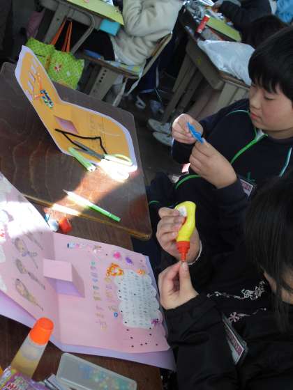 2月9日(月) 4年 図工「とびだすメッセージ」
