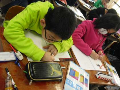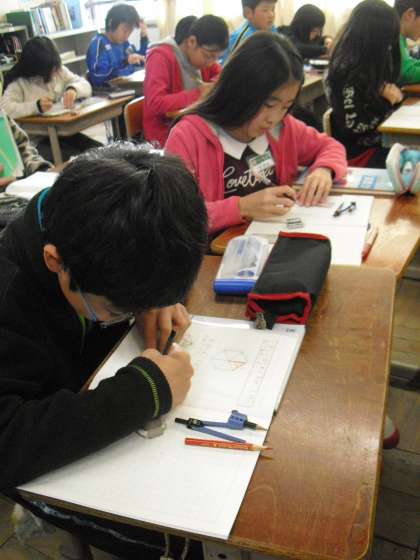 今日のめあては「等しい辺の長さを使って正六角形をかこう」です。うまくかけているかな?