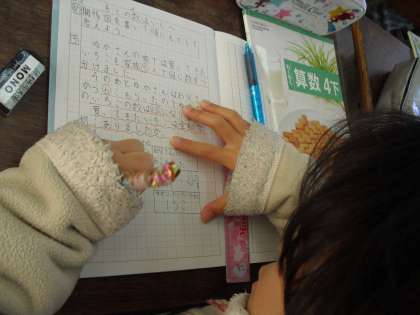 4年生の算数は「もとの数はいくつ」です。今日は、関係図をかきながら、問題を解いていきます。2人組の交流もノートを指し示しながら、ていねいに自分の考え方を伝えています。しっかり考えは、深まりましたか?