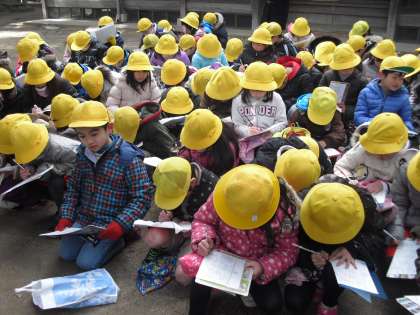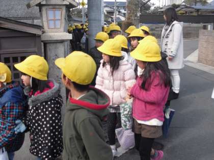 今日は,川岡校区にある古いものを見つけにいきました。道しるべやおじぞうさんなど,「え。こんなところにあったのか。」「知らなかった。」など,色々な発見があったようです。