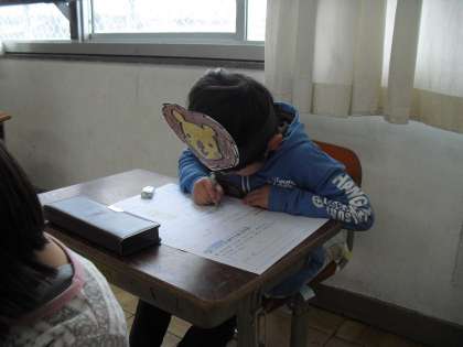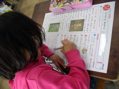 今日は国語のテストです。4月に入学した時には、ひらがなもかけなかったのに、今ではこんな長文の問題にもこたえられるようになりました。みんながんばったよね!
