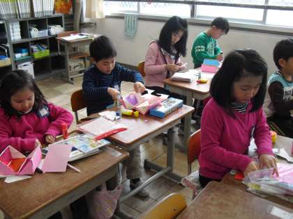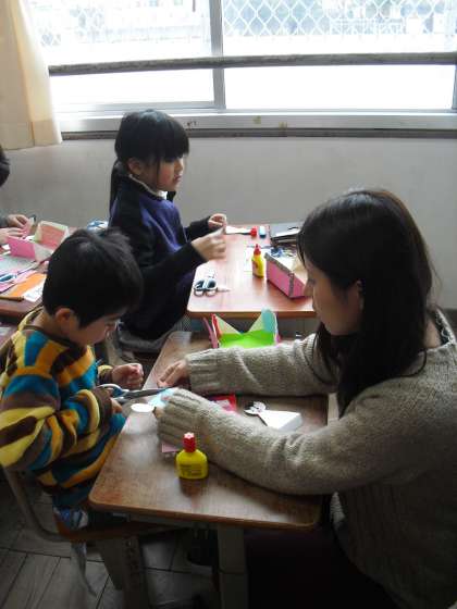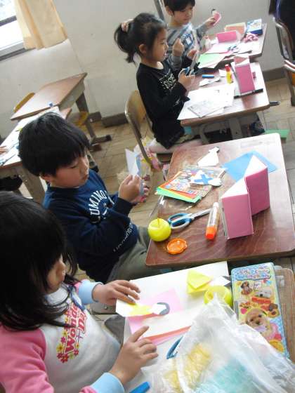 今日の生活は、むかしあそびです。みんなでおひなさまを作りました。うまく作れてるかな?