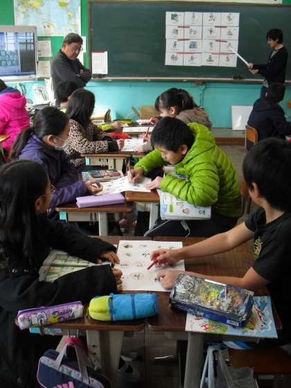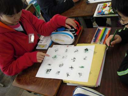 今日はルー先生との英語の学習です。ルー先生が発音した単語をどちらが先に押さえることができるか競い合います。なかなかポイントをとれなくて、最後の最後にとったポイントは、焼け石にウォーターでしたが、みんながんばりました!
