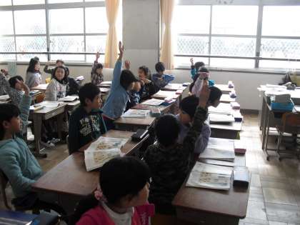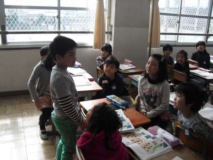 今日の算数のめあては「物の位置の言い方を知って、言ってみよう」です。「前から何番目」や「右から何番目」など、物の位置の言い方を学習しました。聞く人もちゃんと発表する人の方に体をむけて、しっかり聞けていますね!