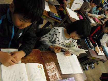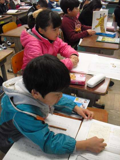今日の国語のめあては「読んだお話を紹介しよう」です。あらすじをきちんとまとめられるようにお話を順にふりかえったり、心に残った場面などを交流しあったりしました。