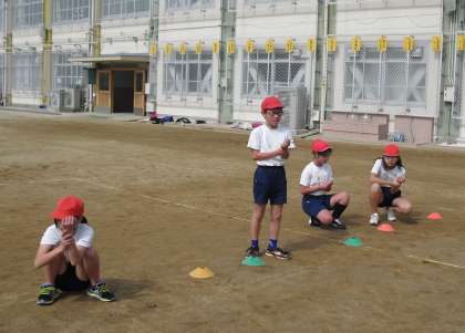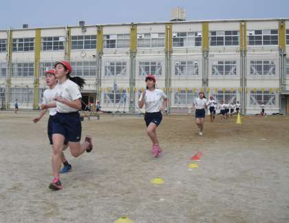 6年生の体育はジョギングです。心拍数を確かめながら、自分が調子よく走ることができるペースをみつけていきます。卒業しても、楽しく運動を続けたいと思える態度を養うことも小学校の体育では大切な学習です。がんばってね!