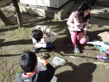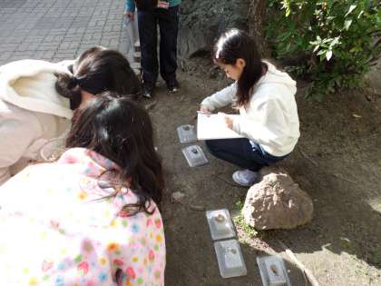 今日は,地面にしみこんだ水は,蒸発するかについて実験しました。1時間目に土の上に置いたパックに水滴がついていました。「わあ!水滴がついてる!」と子ども達は驚いていました。